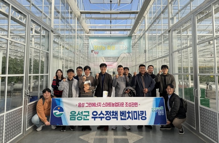 이번 벤치마킹은 국토부 투자선도지구 공모사업에 선정된 음성 그린에너지 스마트농업타운 조성 정책 수립과 전략을 모색하기 위해 마련됐으며, 2030전략실, 농정과, 농업기술센터 등 관계자 10여 명이 참석했다.