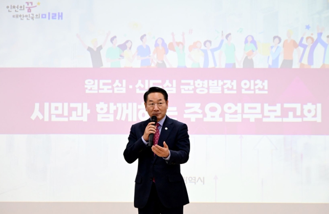 [파이낸셜경제=김기보 기자] 인천광역시는 11월 27일 상상플랫폼에서 ‘시민의 행복을 담는 미래도시 구현’을 주제로 주요업무보고회를 개최하고, 생활권 단위 맞춤형 도시계획 수립 등 2026년 6대 추진 과제를 발표했다.