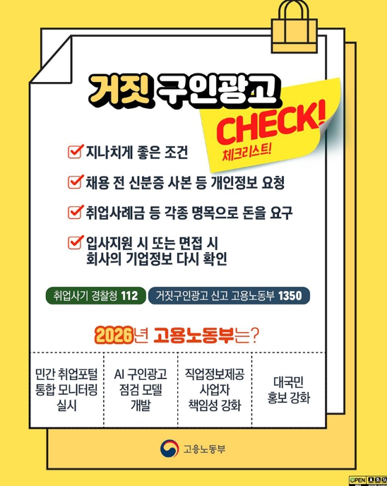 [파이낸셜경제=김영란 기자] ■ 거짓 구인광고 체크리스트!