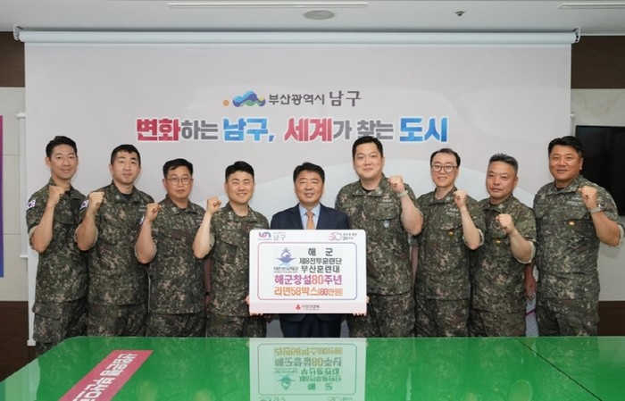 [파이낸셜경제=박영진 기자] 지난 27일, 해군 제8전투훈련단 부산훈련대(훈련대장 심정환 중령)는부산광역시 남구에 해군창설 80주년과 호국보훈의 달을 기념해 개최한 바자회 수익금으로 구매한 라면을 전달했다.