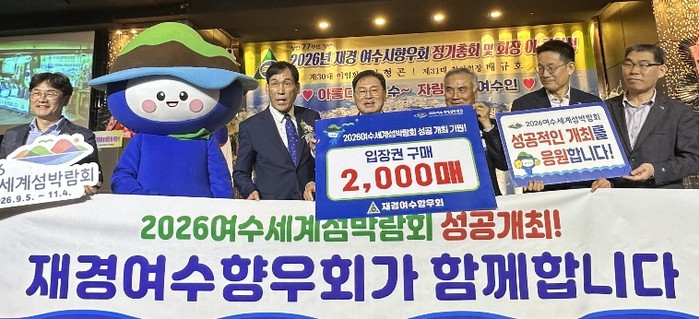 [파이낸셜경제=김예빈 기자] (재)2026여수세계섬박람회조직위원회는 지난 26일 재경여수향우회 회장 이취임식에서 향우회와 2,200만 원 상당의 입장권 구매약정을 체결했다.