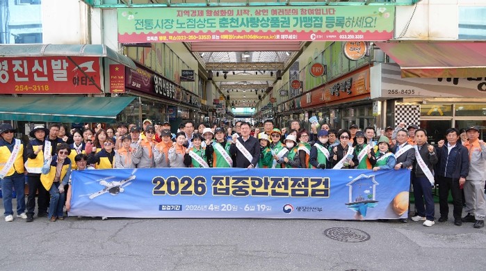 [파이낸셜경제=조성환 기자] 춘천시와 춘천소방서, 한국전기안전공사, 강원도시가스 등 관계기관이 23일 중앙시장 일원에서 ‘2026년 집중안전점검 및 안전점검의 날’ 합동 캠페인을 실시했다.