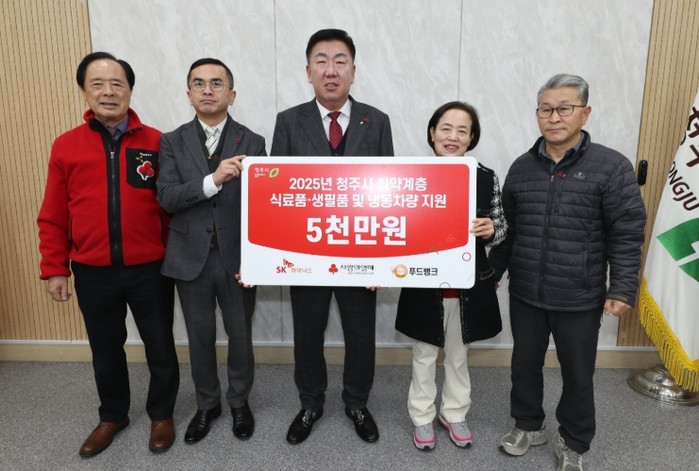 이날 임시청사 직지실에서 개최된 기탁식에는 이범석 청주시장, 박호현 SK하이닉스㈜ 부사장, 이민성 사회복지공동모금회 회장, 조경옥 사랑나눔푸드뱅크 대표, 박종필 청원기초푸드뱅크 팀장 등이 참석했다.
