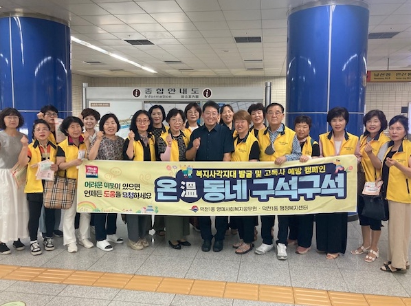 [파이낸셜경제=박영진 기자] 부산 북구 덕천1동 행정복지센터는 지난 9일, 여름철 폭염에 취약한 소외된 이웃을 발굴하고 고독사를 예방하기 위해 숙등역 지하철 역사 내에서 명예사회복지공무원과 함께 복지사각지대 발굴 캠페인을 실시했다고 밝혔다.
