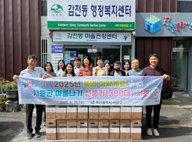 [파이낸셜경제=박영진 기자] 부산 사상구는 폭염과 무더위에 취약한 독거노인, 기초수급자 등 폭염취약계층 300세대에 대해 시원한 여름나기를 위한 선풍기300대를 구입하여 배부했다.
