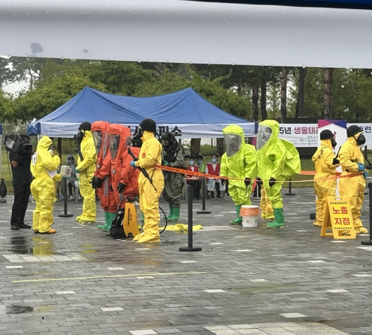 이날 훈련은 세종에서 열리는 2027 충청권 하계세계대학경기대회 폐막식장 인근에서 생물테러 발생 상황을 가정한 초동대응 역량과 실전 능력을 강화하는 차원에서 기획됐다.