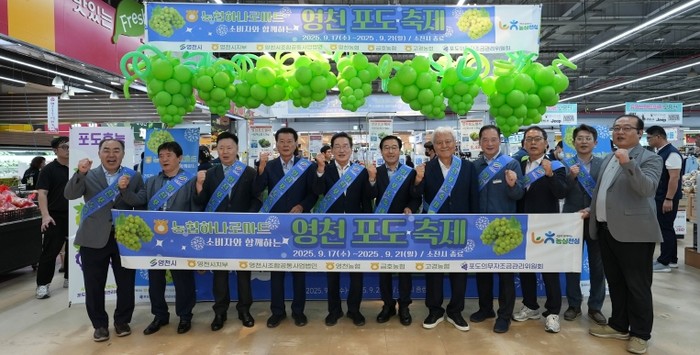 최기문 시장은 “최근 샤인머스캣 공급량 증가로 농가의 어려움이 커지고 있는 상황에서, 이번 행사를 선제적으로 진행하게 됐다”며, “앞으로도 대형마트와 지속적으로 협력해 엄선된 영천 포도를 공급하고 안정적인 판로 개척과 농가 소득 증대를 위해 최선을 다하겠다”고 말했다.