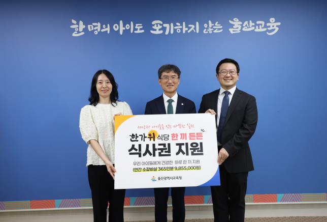 [파이낸셜경제=김예빈 기자] 울산광역시교육청은 30일 교육청 접견실에서 북구 진장동 한가위 식당에서 지원하는‘한 끼 든든 식사권’ 전달식을 열었다.
