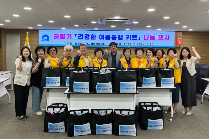 이번 사업은 지역사회보장협의체 사업비 100만원을 활용해 여름동행 키트 6종(모기퇴치제, 제습제, 선크림, 간편 식료품, 쿨타월세트, 양우산 등)을 마련했다.