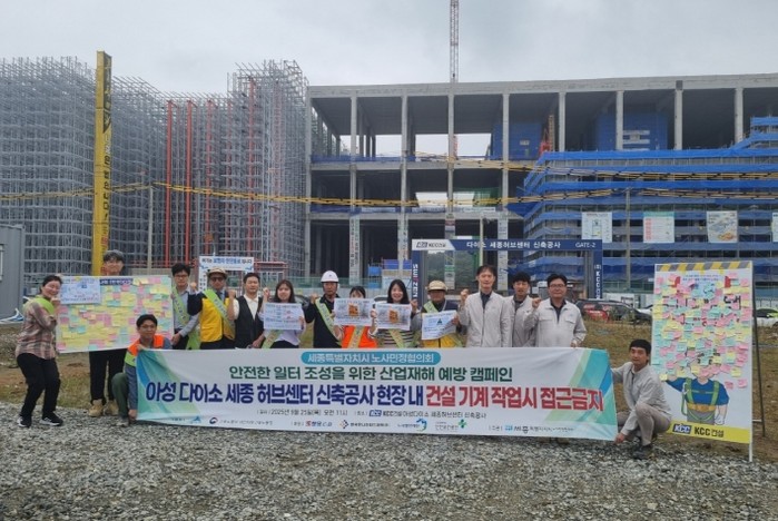 [파이낸셜경제=김영란 기자] 세종특별자치시가 25일 아성다이소 세종허브센터 건설현장에서 세종시노사민정협의회와 함께 산업재해 예방 캠페인을 진행했다고 밝혔다.