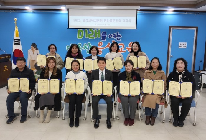 [파이낸셜경제=김기보 기자] 음성교육지원청은 2026학년도 음성교육지원청 민간공모사업 대상자를 2월 9일 확정하고, 선정 기관과 협약식을 개최했다.