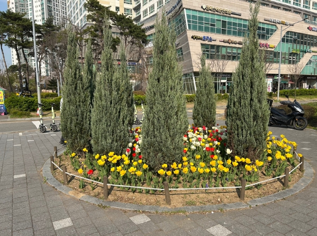 이번 활동은 단조로웠던 도심 환경에 생동감을 불어넣고 시민들이 일상 속에서 계절의 변화를 체감할 수 있도록 추진됐으며, 다양한 색상의 튤립을 대량 식재하여 녹지 내 휴게 환경 정비를 병행하여 걷는 즐거움이 가득한 도심 속 명소를 구현하는 데 주력했다.
