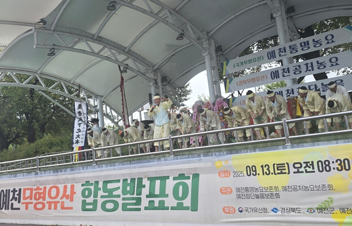 [파이낸셜경제=김지훈 기자] 예천군은 13일, 통명농요보존회, 공처농요보존회, 청단놀음보존회가 주관한 ‘예천 무형유산 합동공연 행사’를 한천체육공원에서 성황리에 개최했다.