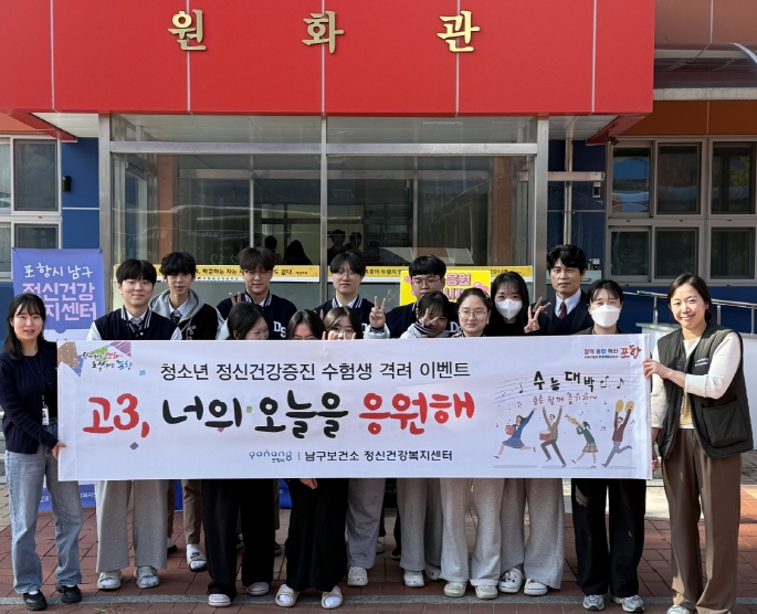 [파이낸셜경제=김지훈 기자] 포항시 남구정신건강복지센터는 4일부터 대학수학능력시험을 앞둔 수험생들의 긴장과 불안을 완화하고 마음의 안정을 돕기 위해 격려 이벤트를 운영하고 있다.