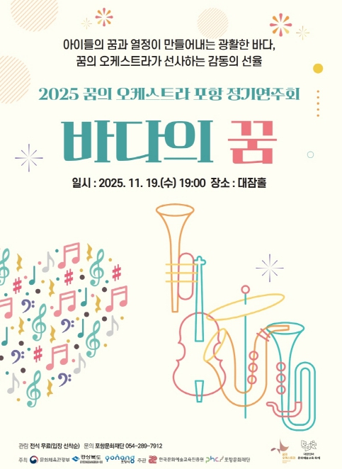 이번 공연은 포항 지역 아동·청소년으로 구성된 오케스트라 단원들이 1년 간의 음악적 성장을 무대 위에서 시민들과 나누는 뜻깊은 자리로, 그동안 쌓아온 실력을 생생한 합주로 선보일 예정이다.