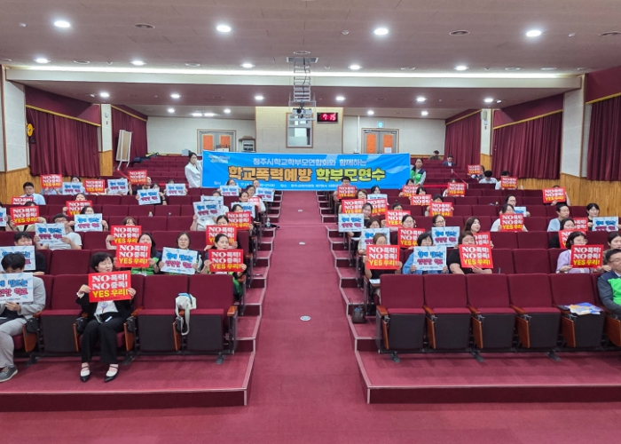 [파이낸셜경제=김기보 기자] 청주교육지원청과 청주학교학부모연합회는 9월 17일 청주교육지원청에서 청주시내 초,중,고,특수 학부모를 대상으로 체험형 학교폭력예방 연수를 진행했다.