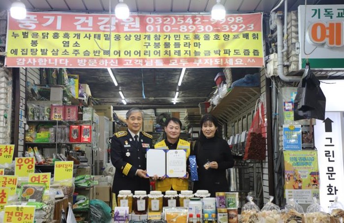 | ▲ 계양소방서, 제63주년 소방의 날 맞아 전통시장 자율소방대·한국119청소년단 유공자 ‘찾아가는 표창’ 수여 |