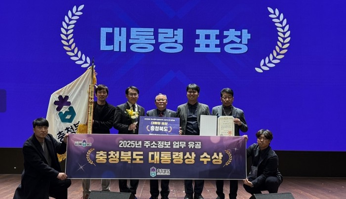 [파이낸셜경제=김기보 기자] 충북도는 행정안전부가 주관하는 ‘2025 주소정책 성과 워크숍’에서 주소정보 업무 유공 ‘최우수 기관’으로 선정돼 대통령표창을 수상했다.