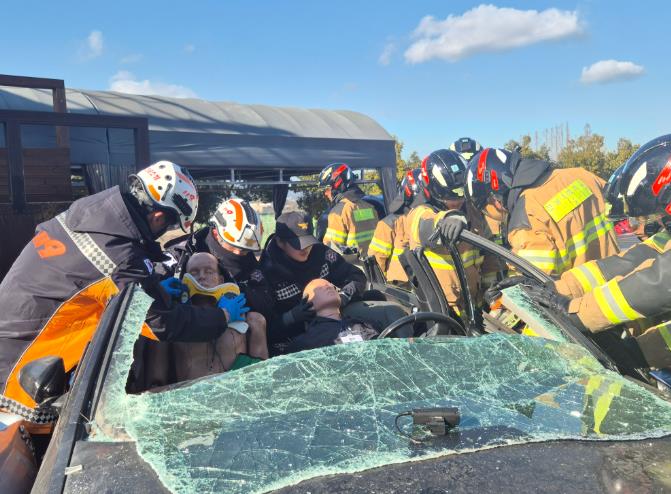 핵심 훈련 내용은 ▲화재 분야(소방호스 전개, 포위 주수, 농연 검색) ▲구조 분야(구조장비 조작, 로프 하강, 교통사고 인명구조) ▲구급 분야(전문 심폐소생술, 응급처치 및 환자 이송) 등 현장 활동에 필수적인 3대 영역을 중심으로 구성됐으며 재난현장을 가정하여 동시 진행됐다.