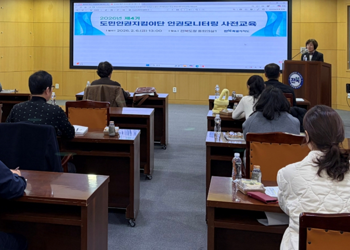 [파이낸셜경제=김예빈 기자] 전북특별자치도 인권담당관실은 6일 도청 중회의실에서 도민인권지킴이단 시·군 단장 14명을 대상으로 ‘인권모니터링 전문 강화 교육’을 실시했다.