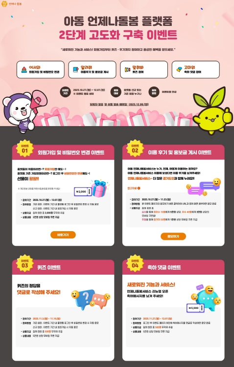 | ▲ 아동언제나돌봄 플랫폼 이벤트 페이지 |
