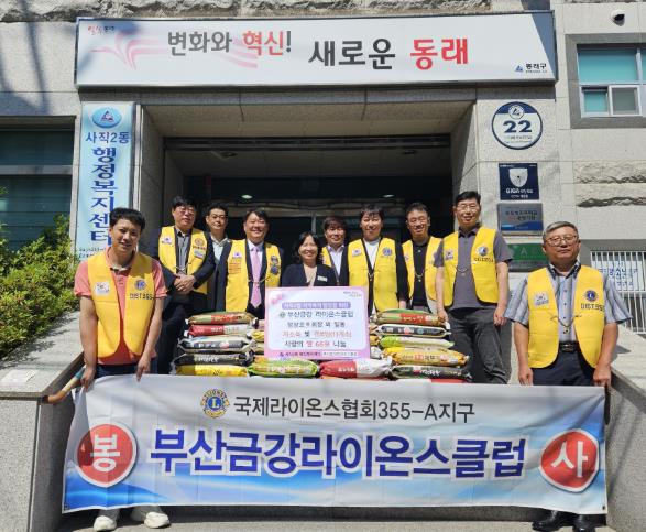 이번 성품은 회장 이・취임행사에서 축하 화환 대신 받은 백미를 지역 내 경제적으로 어려운 이웃과 경로당 어르신들을 위해 기탁한 것으로, 부산금강라이온스클럽은 지난 3월에도 관내 경로당에 간고등어를 기부하는 등 지역사회에 꾸준한 나눔을 실천하고 있다.