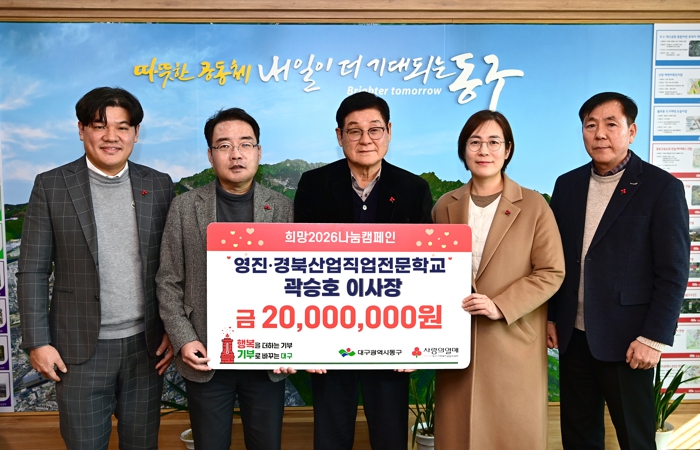[파이낸셜경제=김지훈 기자] 곽승호 경북산업·영진직업전문학교 이사장은 지난 21일, 동구청을 방문, 관내 저소득 가정을 위해 이웃돕기 성금 2천만원을 기탁했다.