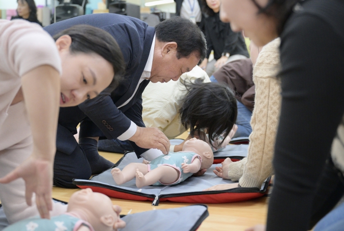 학부모들은 교육용 인형을 활용해 직접 심폐소생술을 체험하며 실제 상황에서 침착하게 대응하는 법을 익혔다.