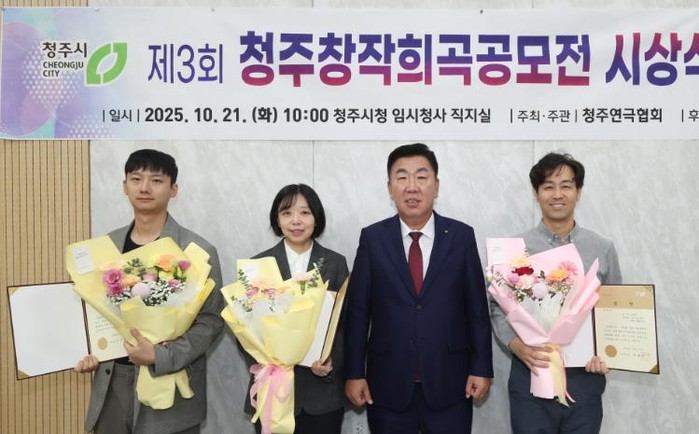 최성우 청주연극협회 회장은 “청주는 오랜 문화예술의 전통을 가진 도시로, 이번 공모전이 젊은 극작가들에게 창작의 무대를 넓히는 계기가 됐다”며 “수상작들이 실제 무대에서 관객과 만나는 날이 오기를 기대한다”고 말했다.