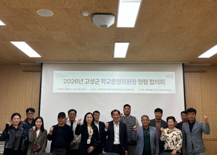 [파이낸셜경제=조성환 기자] 강원특별자치도고성교육지원청은 4월 22일 14시 고성교육지원청 3층 중회의실에서 관내 초·중·고 학교운영위원장 18명을 대상으로‘2026년 고성군 학교운영위원장 청렴 협의회’를 개최했다.