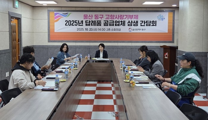 [파이낸셜경제=김예빈 기자] 울산 동구는 10월 23일 오후 2시 동구청 소회의실에서 고향사랑기부제 답례품 공급업체 상생 간담회를 개최했다.