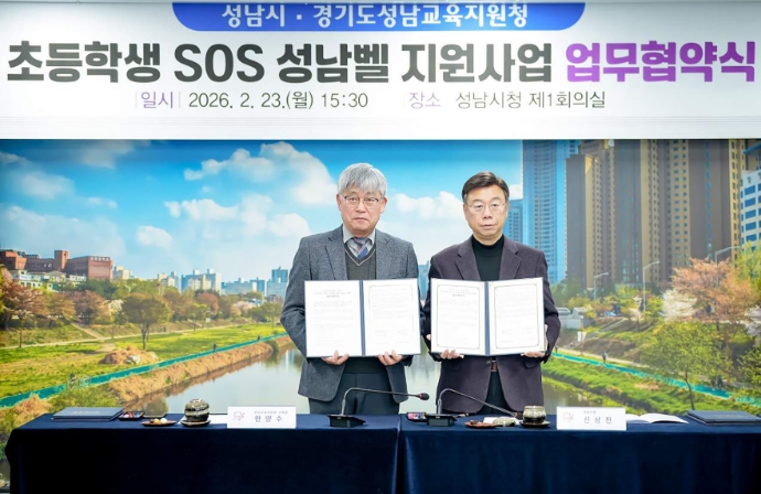 [파이낸셜경제=김기보 기자] 성남시는 2월 23일 성남교육지원청과 ‘초등학생 대상 긴급 구조 요청(SOS) 성남벨 지원 사업’ 추진을 위한 업무 협약을 했다.