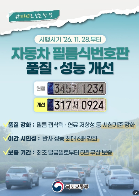 국토교통부, 자동차 필름식 번호판 품질·성능 개선