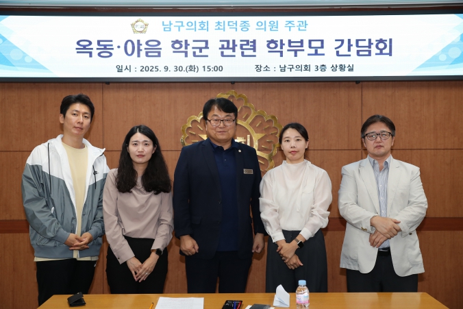 [파이낸셜경제=김예빈 기자] 울산 남구의회 최덕종 의원(더불어민주당·신정4동·옥동)은 30일 3층 의회상황실에서 남구 옥동지역 중학교 배정 민원과 관련해 학부모 간담회를 개최했다.