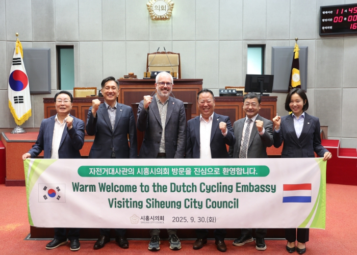 [파이낸셜경제=김기보 기자] 시흥시의회 도시환경위원회가 9월 30일 의회청사 소담뜰에서 네덜란드 자전거대사관(Dutch Cycling Embassy, DCE)을 초청해 간담회를 열고, 시흥시 자전거 정책 발전 방향과 친환경 교통 시스템 구축 방안에 대해 논의했다.