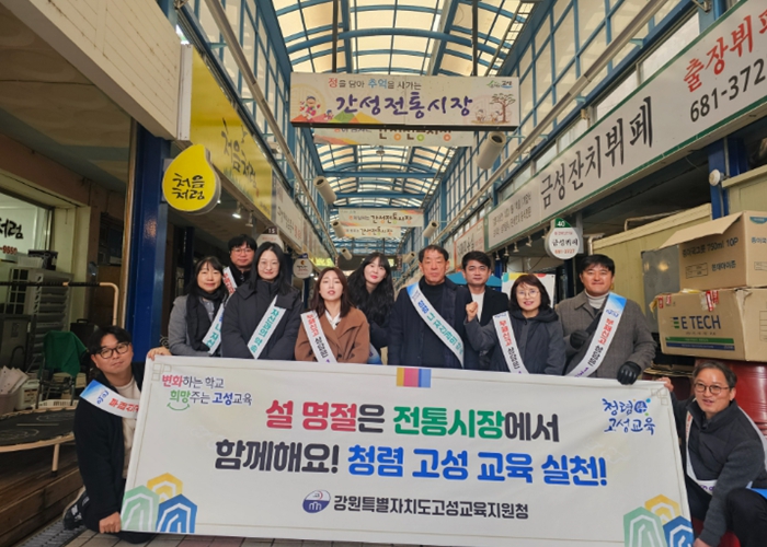 [파이낸셜경제=조성환 기자] 고성교육지원청은 설 명절을 앞두고 지역 상권에 활력을 불어넣기 위해 2월 10일(화)과 11일(수) 이틀간 관내 전통시장에서 ‘청렴+(Plus) 나눔 설 명절 전통시장 장보기 캠페인’을 전개한다.