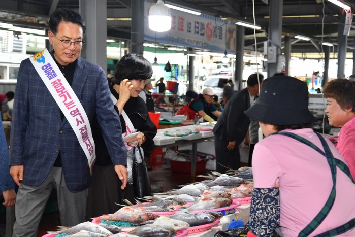 | ▲ 울산 울주군이 추석 명절을 맞아 28일 남창옹기종기시장에서 ‘추석맞이 전통시장 장보기 행사’를 개최한 가운데 이순걸 군수와 관계 공무원들이 제수용품을 구입하고, 전통시장 이용 홍보 캠페인을 펼쳤다. |