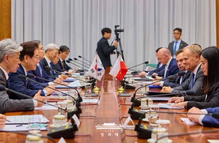 이 대통령은 폴란드 내 한국 전기차 배터리 투자 기업들의 포트폴리오 다각화를 언급하며 "우리 기업들에 대한 폴란드 정부의 관심과 적극적 지원을 당부했다"고 말했다.