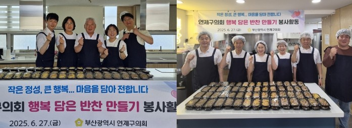 [파이낸셜경제=박영진 기자] 부산시 연제구의회는 6월 27일, 관내 공유주방 두 곳(△거제4동 해맞이마을 마을관리 사회적협동조합 공유주방 △연산9동 연제구생활문화센터 공유주방)에서 어려운 이웃에게 전달할 밑반찬을 직접 만드는 자원봉사 활동을 펼쳤다.