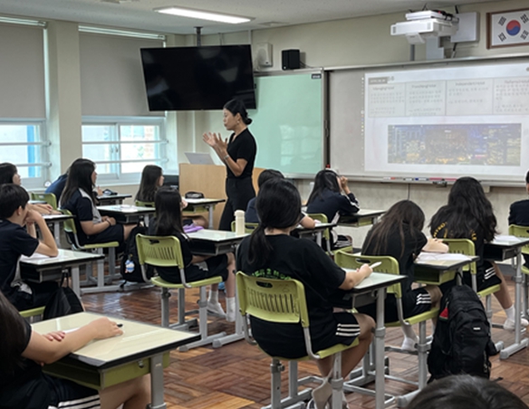 이번 프로그램은 청소년들에게 다양한 직업 세계를 직접 경험할 기회를 제공하고, 주도적인 진로 설계를 돕기 위해 마련된 행사로, 간호사·건축사·경찰·앱개발자·뮤지컬배우·AI전문가 등 총 40개 직업 분야의 전문가들이 학교를 찾아 학생들과 직접 소통했다.