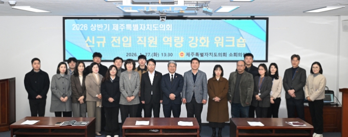 [파이낸셜경제=김영란 기자] 제주특별자치도의회 의회운영위원회는 지난 1월 27일, 도의회 의사당 소회의실에서 2026년 상반기 정기인사로 전입한 직원 및 실무 역량 배양이 필요한 직원들을 대상으로 ‘역량 강화 워크숍’을 개최했다.