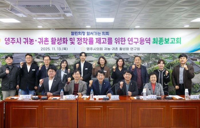 [파이낸셜경제=김지훈 기자] 영주시의회 의원연구단체인 '귀농·귀촌 활성화 연구회'는 13일 영주시의회 소회의실에서 '귀농·귀촌 활성화 및 정착률 제고 방안 연구용역' 최종보고회를 열고, 영주시 귀농·귀촌 정책의 현황과 향후 발전 방향을 논의했다.