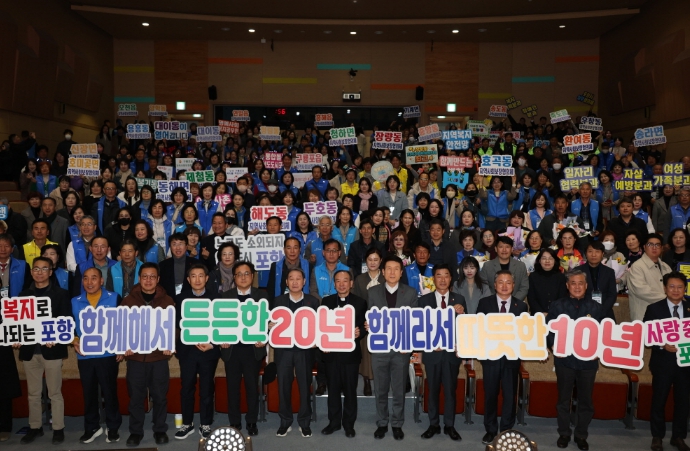 이강덕 포항시장은 “많은 어려움 속에서도 시민을 위해 헌신해 주신 협의체 위원님들의 열정과 노력 덕분에 포항의 복지는 흔들림 없이 한 단계 더 도약할 수 있었다”며 “오늘 이 자리가 서로의 소중한 경험과 지혜를 나누는 뜻깊은 시간이 되기를 바라며, 20주년을 맞은 협의체에 진심으로 감사와 축하를 전한다”고 말했다.