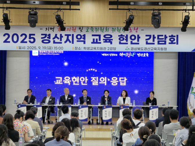 [파이낸셜경제=김지훈 기자] 경상북도경산교육지원청은 9월 19일 15:00, 학생교육지원관 2강당에서 조지연 국회의원과 박채아 교육위원회 위원장을 초청하여 경산지역 교육현안을 논의하는 간담회를 개최했다.
