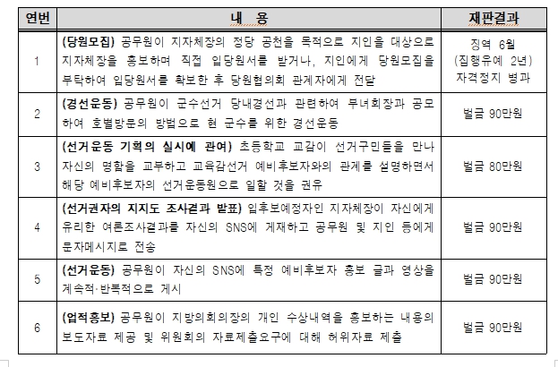 | ▲ 공무원의 선거관여행위 주요 처벌사례 |