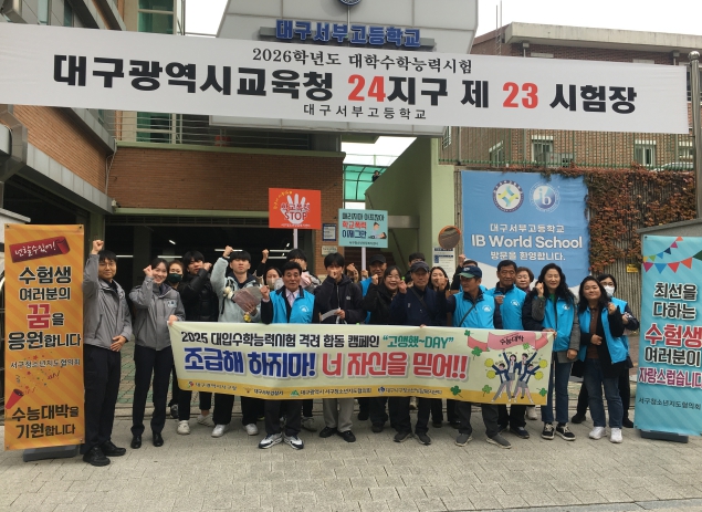 [파이낸셜경제=김지훈 기자] 대구 서구 청소년지도협의회(회장 황만태)는 지난 12일, 서부고등학교 정문에서 학생들의 수능 예비 소집일 시간에 맞춰 수험생 응원 및 선도·보호 합동 캠페인을 실시했다.