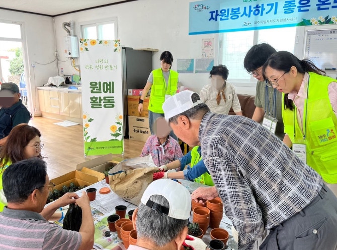 [파이낸셜경제=김영란 기자] 제주특별자치도사회서비스원은 지난 9월 30일, 성산읍 신풍리경로당에서 어르신들과 함께하는 원예 자원봉사 활동을 실시했다.