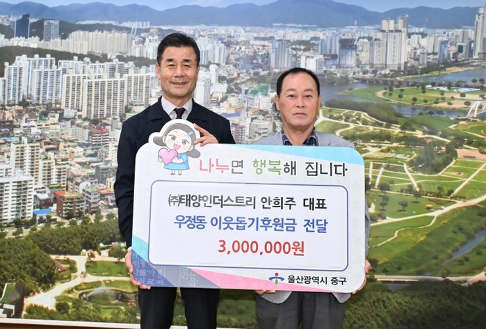 안희주 ㈜태양인더스트리 대표는 “작은 정성이지만 이웃과 함께 나눌 수 있어서 기쁘다”며 “앞으로도 주변을 살피며 희망과 사랑을 전하기 위해 노력하겠다”고 말했다.