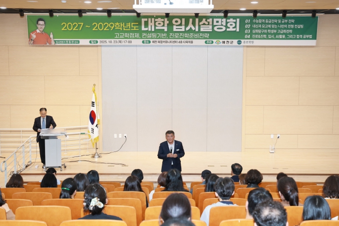 이날 입시설명회는 2027~2029학년도 대학입시제도 변화에 대비해 고교학점제 기반의 진로·진학 설계 방향과 이를 뒷받침할 전략적 학습 접근법을 제시하기 위해 마련됐으며, 관내 중·고등학생 및 학부모 등 100여 명이 참여해 입시에 대한 궁금증을 해소하고 정보를 얻는 시간을 가졌다.