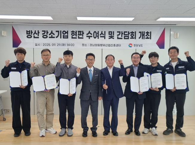 [파이낸셜경제=김예빈 기자] 경상남도는 29일 경남창원방위산업진흥센터에서 ‘2025년 방산 강소기업 지정 현판식 및 기업 간담회’를 개최했다.